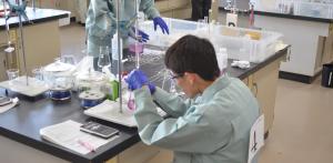 旋盤作業、電気工事、電子回路組立、化学分析、木材加工、測量の6つの部門で競技が行われ、出場者は、普段の鍛錬の積み重ねで身に付けた技能や技術を存分に発揮しました。