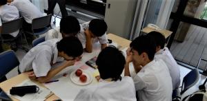 演習の時間には、各グループに分かれ、県内の「桃」を使った新商品のアイデアを出し合いました。