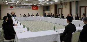 表彰式終了後、優秀教職員及び優秀教職員(団体)の代表者と教育長並びに教育委員による懇談会を開催し、功績に関する報告を受けました。
