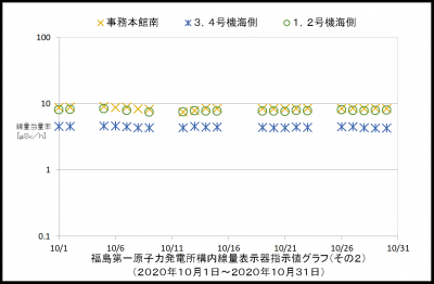 福島第一原子力発電所1~3号機原子炉建屋内の原子炉圧力容器及び原子炉格納容器内に残されている燃料、燃料デブリの未臨界確認は、通常、希ガスモニタにより監視していますが、希ガスモニタで監視できない場合は、代替として、原子炉圧力容器底部温度上昇率及び敷地境界付近に設置されたモニタリングポストによる空間線量率の監視を行うことになっています。また、東京電力ホールディングス株式会社は、モニタリングポストを補完する位置付けで、敷地内の空間線量率把握を目的に設置されている線量表示器の一部(6ヶ所)も活用する運用をしています。
