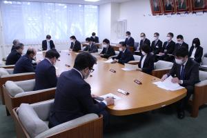 - 各派交渉会を開き、2月定例会、2月定例会開催時における新型コロナウイルス感染防止対策、永年勤続功労者の表彰、議員勉強会について協議しました。