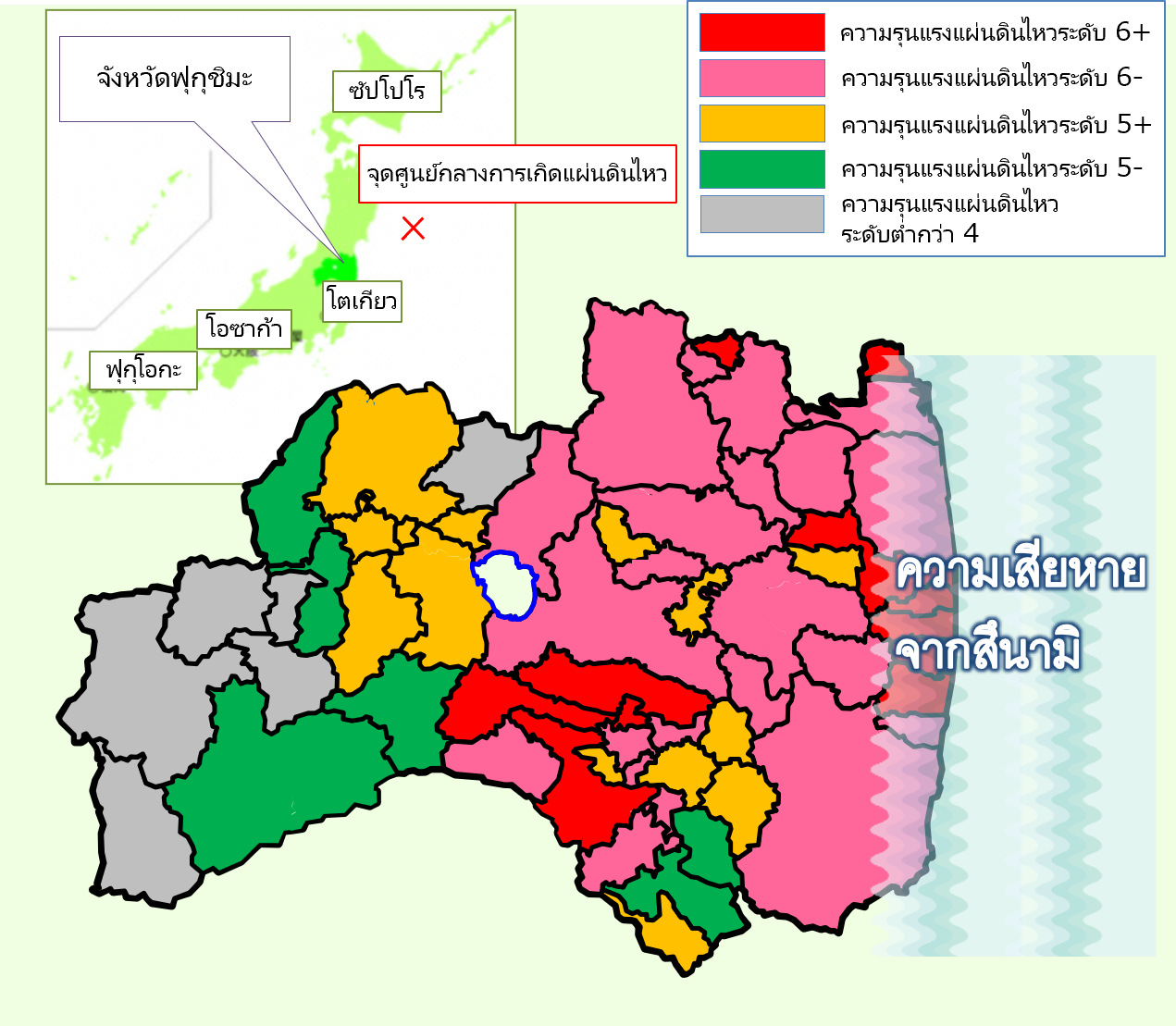*คำนวณมูลค่าความเสียหายคร่าวๆ โดยประมาณจากภาพถ่ายทางอากาศ ฯลฯ ภายในระยะ 30 กม. จากโรงไฟฟ้านิวเคลียร์ฟุกุชิมะแห่งที่หนึ่ง ซึ่งอยู่ภายใต้การดูแลรับผิดชอบของจังหวัด ไม่รวมมูลค่าความเสียหายคร่าวๆ ในส่วนหนึ่งของเมืองมินามิโซมะรวมถึง 8 หมู่บ้านและอำเภอในเขตฟุตาบะ ซึ่งอยู่ภายใต้การดูแลรับผิดชอบของเทศบาล