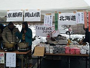 葛尾村子供会、葛力創造社など地域の方々とコラボレーションした「かつらお絆クリスマス会」に全国各地から物産品を募り物産展を開催し、クリスマス会が始まる前段を盛り上げました。当日は北海道から宮崎まで8箇所の名物品が多数集まり、買い物を楽しんで頂きました。