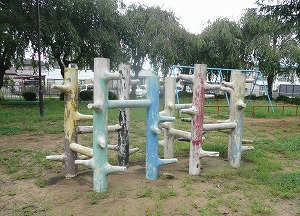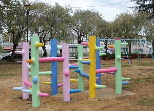 - 古くなってペンキが剥がれ落ちた遊具や汚れたトイレを洗浄し、下塗りを施した上で明るいデザインに塗り変えた。