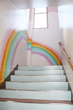 - 施設の外壁と内壁を洗浄し、下塗りを施した上で、子どもたちのデザインアイディアや好きな色彩を取り入れ、共同作業で明るく塗り変えた。