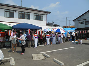 川越市の「楽団JOY」の」生演奏で出場者30名、小高区民200名参加、支援者から沢山のプレゼントもあり、大盛況。