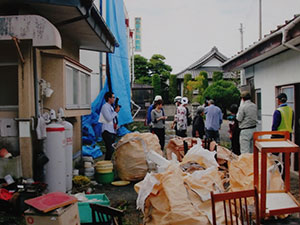 今回は初めて手伝いボランティア14名が同行(一行は計24名)し、南相馬市で被災者自宅の片づけを行った。