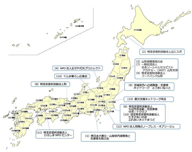 - (1)東日本大震災・山梨県内避難者と支援者を結ぶ会