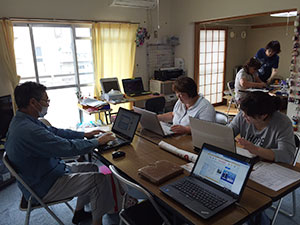 - ボランティアを募集し、パソコンが出来る人材と派遣希望する仮設・借り上げ住宅へのマッチングとコーディネートを行う。