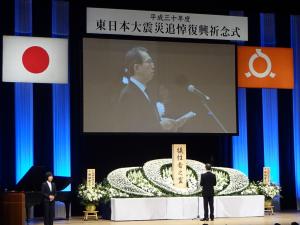 東日本大震災の犠牲者へ哀悼の意を捧げ、復興への想いを新たにするため、「東日本大震災追悼復興祈念式」を