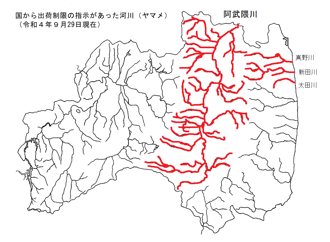 3.秋元湖及び秋元湖に流入する河川(支流を含む。)、長瀬川(酸川との合流点から上流の部分に限る。)並びに福島県内の阿武隈川のうち信夫ダムの下流(支流を含む。)において採捕された「ふな」(養殖により生産されたものを除く。)