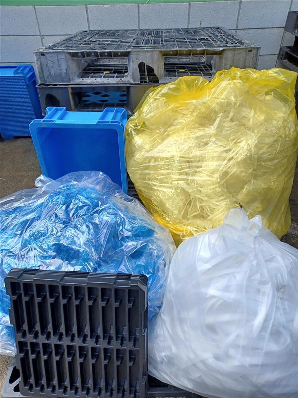 梱包用ラップ、PPバンドなど2ヵ月に1回約1t、定期的にプラスチックパレットを廃棄しておりますが、これらをリサイクルしたいと考えております。