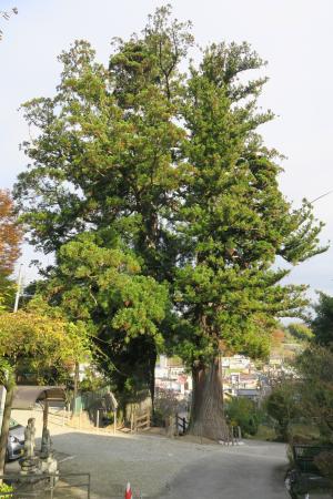 天文3年(1534年)の東禅寺開山の際に、従来天満宮の参道にあった杉を、そのまま山門にしたものと伝えられている。巨木が並んで立つその姿は夫婦にたとえられている。 ■樹 種 スギ ■樹 高 39.2m ■幹周り 10.20m ■樹 齢 660年 ◇県指定天然記念物 ◇県指定緑の文化財 所在/二本松市小浜 (森まっぷで表示) |