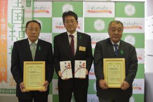 福島県漁業協同組合連合会様、相馬双葉漁業協同組合様から、第69回全国植樹祭のための協賛をいただき、感謝状を贈呈しました。