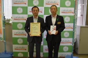 藤倉ゴム工業株式会社様から、第69回全国植樹祭のための協賛をいただき、感謝状を贈呈しました。
