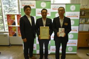 福島県建設業協会相馬支部様から、第69回全国植樹祭のための協賛をいただき、感謝状を贈呈しました。