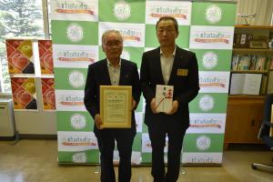 福島県土地改良事業団体連合会様から、第69回全国植樹祭のための協賛をいただき、感謝状を贈呈しました。