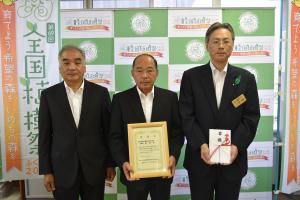 福島県建設業協会双葉支部様から、第69回全国植樹祭のための協賛をいただき、実行委員会幹事会幹事長代理(伊藤農林水産部政策監)から感謝状を贈呈しました。