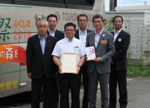 東北アクセス株式会社様から、平成30年春に本県で開催する第69回全国植樹祭のための協賛をいただき、実行委員会幹事長(農林水産部長)から感謝状を贈呈しました。