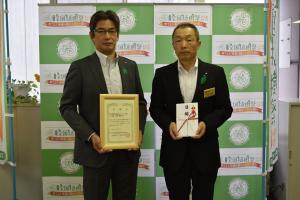 日産自動車株式会社いわき工場様から、第69回全国植樹祭のための協賛をいただき、感謝状を贈呈しました。