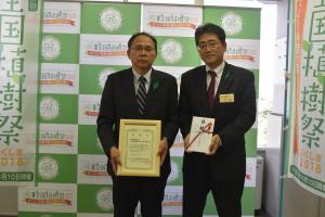NOK株式会社様から、第69回全国植樹祭のための協賛をいただき、感謝状を贈呈しました。