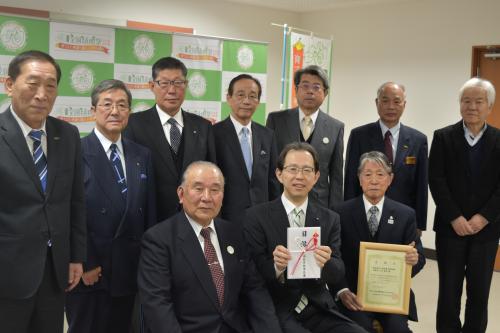 福島県林業会議(公益社団法人福島県森林・林業・緑化協会、福島県森林組合連合会、福島県木材協同組合連合会、福島県農林種苗協同組合連合会、一般財団法人福島県林業会館、林業・木材製造業労働災害防止協会福島県支部、公益財団法人ふくしまフォレスト・エコ・ライフ財団、一般社団法人福島県造園建設業協会、福島県きのこ振興協議会、福島県林業経営者協会)様、福島県林業会議様、福島県森林組合長会議様から、第69回全国植樹祭のための協賛をいただき、実行委員会会長(内堀雅雄知事)から感謝状を贈呈しました。