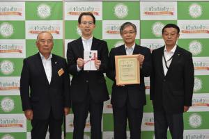 相馬地方森林土木建設業協会様から、第69回全国植樹祭のための協賛をいただき、実行委員会会長(内堀知事)から感謝状を贈呈しました。