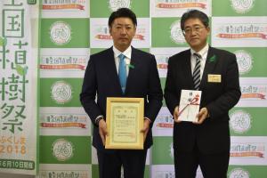 有限会社上原樹苗様から、第69回全国植樹祭のための協賛をいただき、感謝状を贈呈しました。