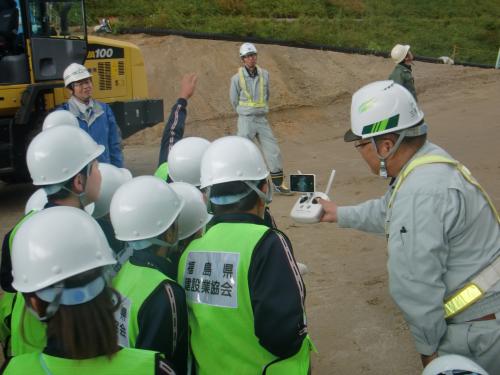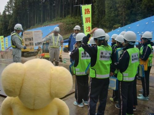 この現場見学会は、建設業の担い手確保のため、建設業に興味を持ってもらえるよう、県内各地の小学校で行われています。