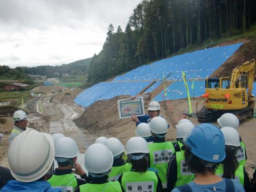 田村市内のよく知っている場所でのバイパス工事ということもあり、みんな興味津々に説明を聞いていました。