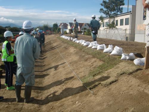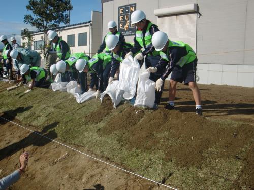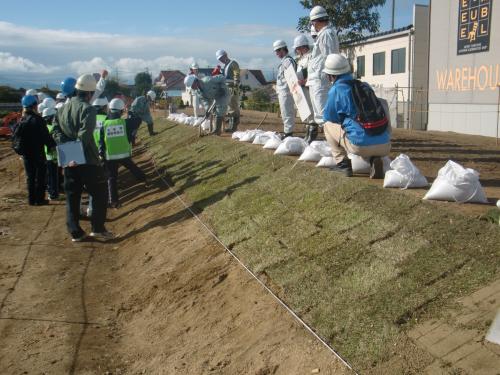 工事概要の説明を受けた後、野芝張り体験が行われました。