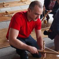 午後は白河市に移動し、福島県文化財センターまほろんで「被災文化財復興展」の見学をしました。相双地方で被災した文化財の救助・現状の説明を受けたのですが、日本の文化・歴史に興味のある参加者が多く、熱心に聞き入っていました。更に地域のお祭りや相馬野馬追など、担当者に質問している参加者もいました。その後僅かな自由時間でしたが、別の展示を見たり、外の縄文式住居を見学したりする他、縄文文化体験「火おこし」を体験した参加者が多く、とても盛り上がりました。(火が着いたのは5人くらい) 【福島県文化財センター「まほろん」】