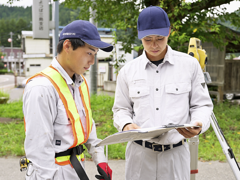 現場での仕事の流れは覚えてきたので、これからは事務仕事もしっかり覚えて一人前の仕事ができるようになりたいです。また「測量士補」の資格を取得し、仕事の幅を広げていきたいです。