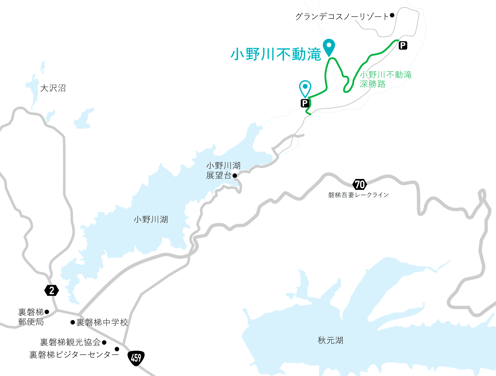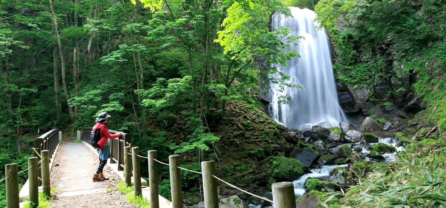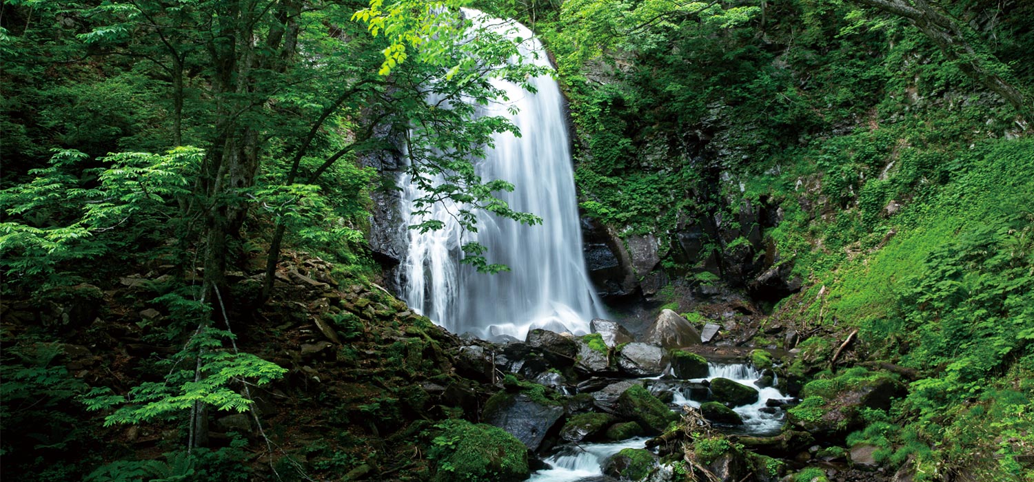 一個水頭25m的大瀑布,周圍環繞著未受破壞的山毛櫸森林。萬代高原的“小野川泉水”被選為百代名泉之一。夏天在綠色中可以看到沁人心脾的水花,冬天可以看到瀑布的一部分結冰並發出藍色光芒的“藍冰”。在冬季,與經驗豐富的導遊一起穿著雪鞋外出。