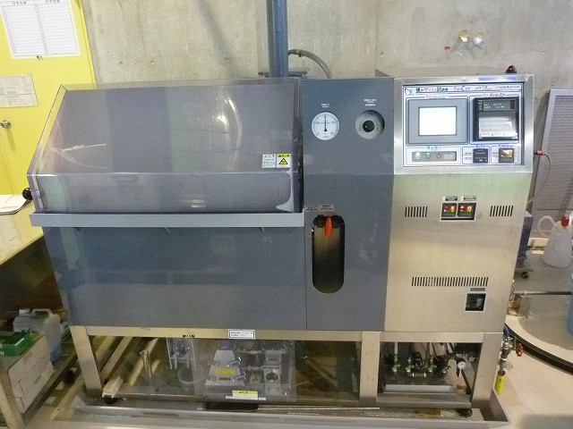 - 適用試験:中性塩水噴霧試験(JIS Z2371)、塩水噴霧・乾燥・湿潤を組み合わせた複合サイクル試験温湿度範囲:塩水噴霧時 35 ℃〜50 ℃、乾燥時(外気温+10℃)〜70 ℃、湿潤時(外気温+10℃)〜50 ℃、60 %RH〜95 %RH内寸法:90 cm×60 cm×50 cm試験片取り付け数:150 mm×70 mmの試験片として48枚取り付け可能