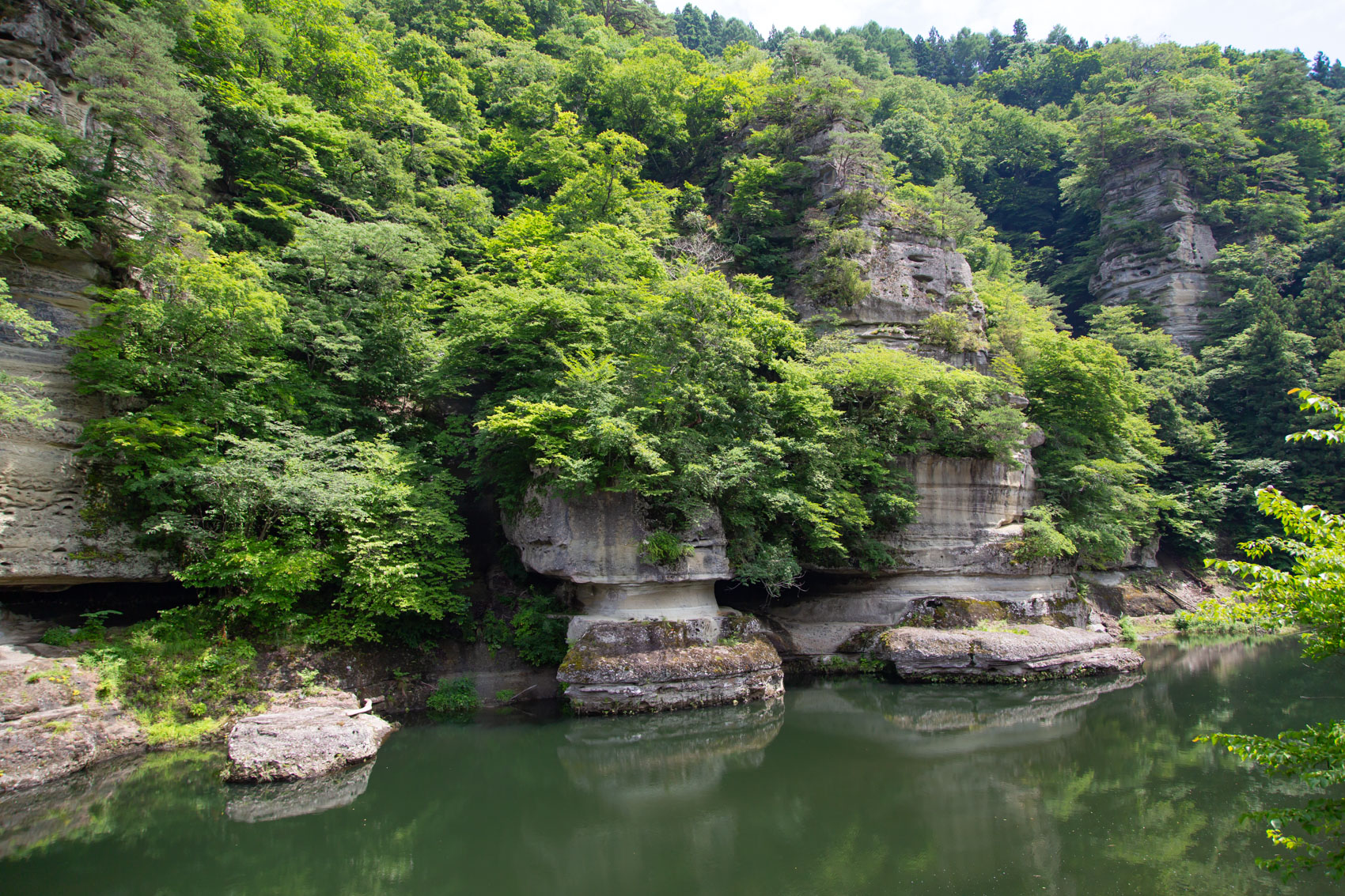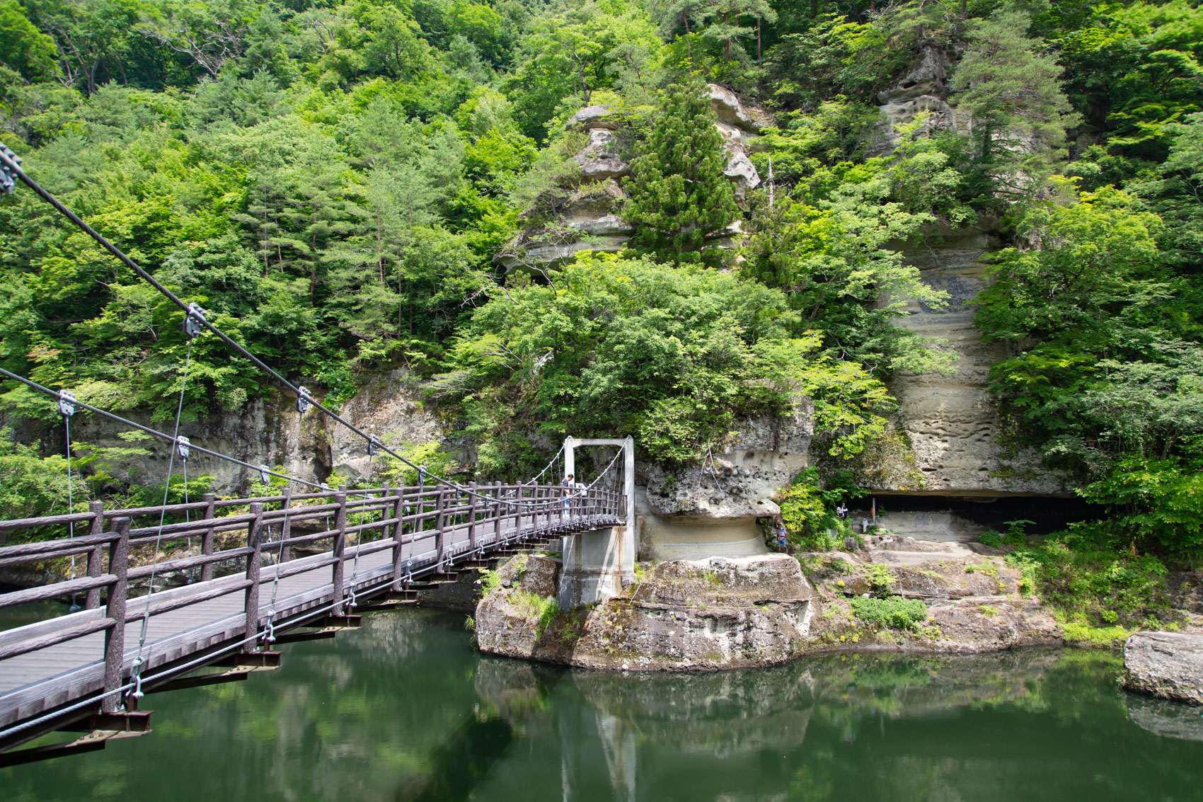 從會津田島站搭乘12:56出發的電車,前往國家天然紀念物「塔崖」。擁有百萬年歷史,奇岩連綿的風景聖地。十分壯觀。也可經由中央架設的橋梁前往對岸。紅葉的時期絕對要來!