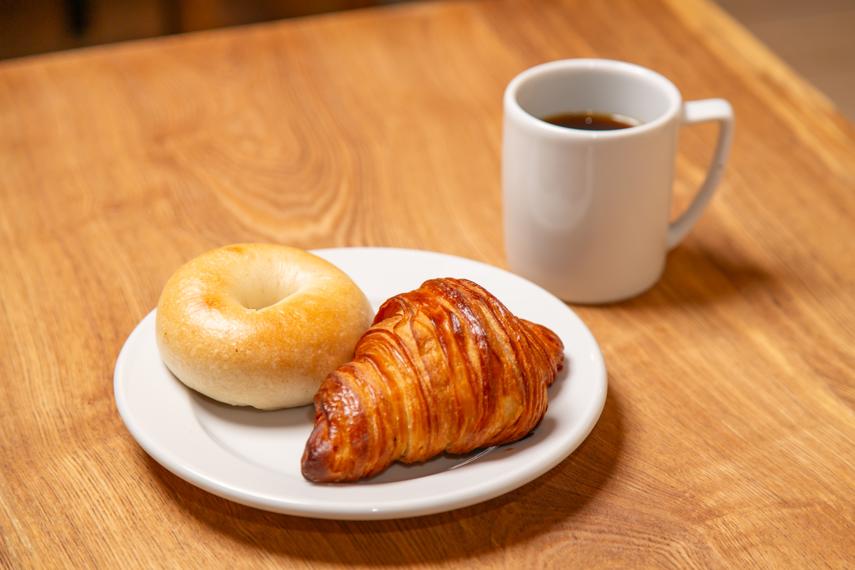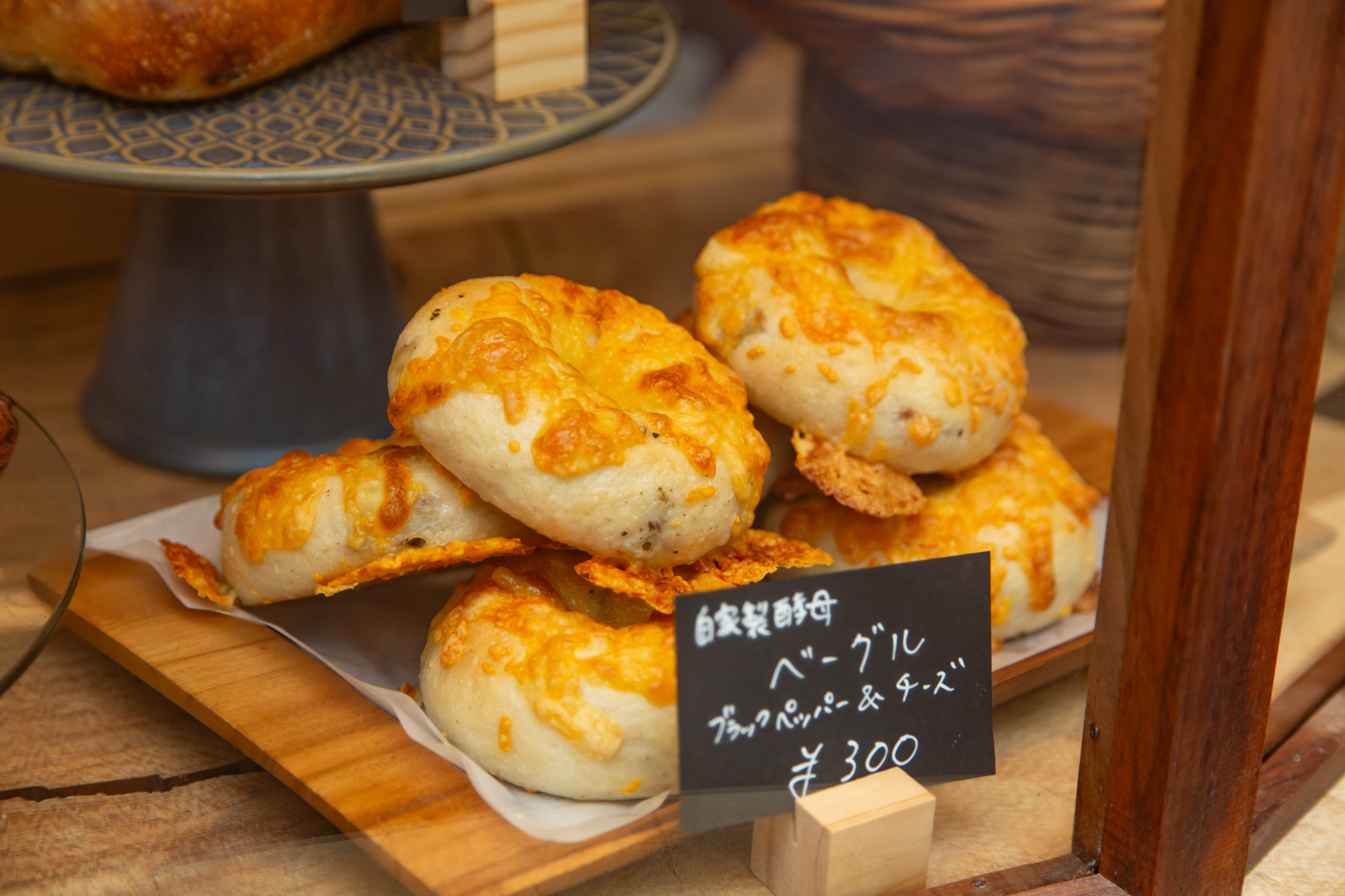 從車窗眺賞懷舊風景並移動,突然躍入眼簾的木工材店。在其中的「Kikori咖啡館」度過午餐時光!!每種麵包看來都很可口,令人難以抉擇。推薦的可頌酥脆蓬鬆、貝果Q彈,和咖啡非常搭配!也想嘗一嘗其他的麵包!