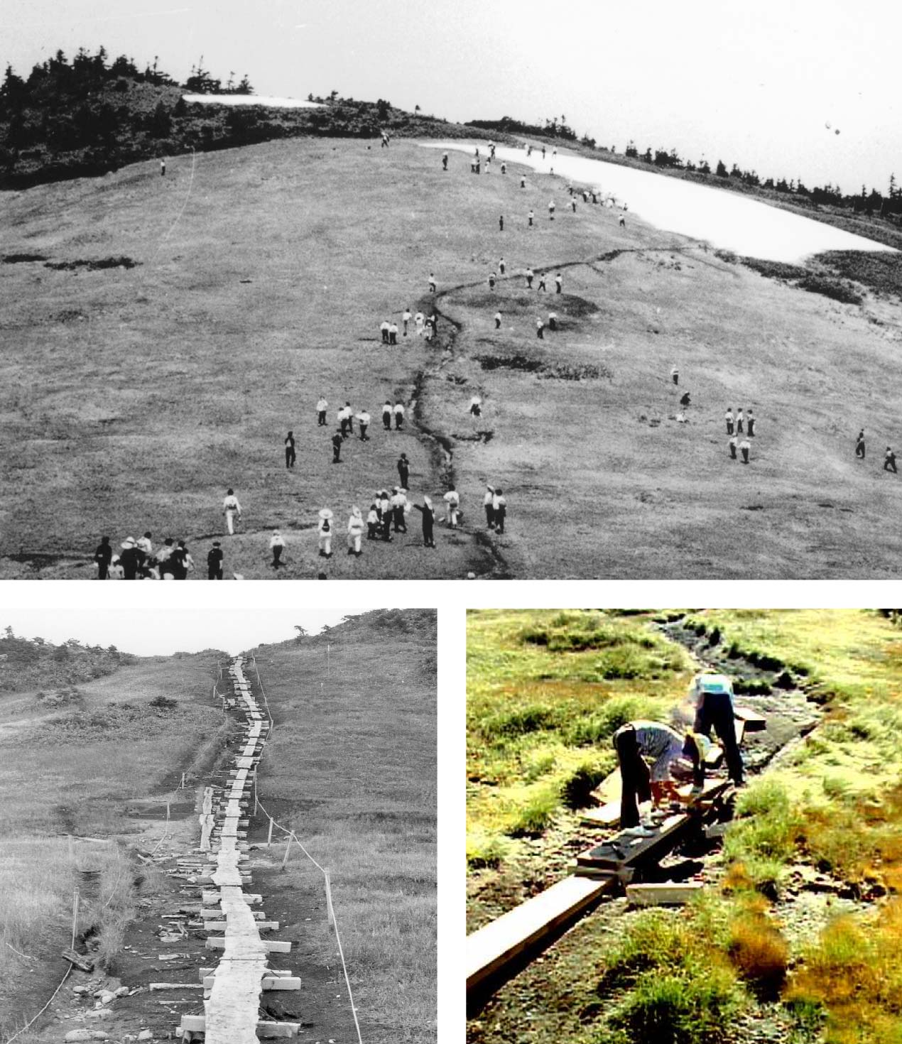 「当時はヘリコプターで運ぶこともできず、山から引き出した木を並べる大変な作業でした」と長一さん。そんな労苦を惜しまないほど檜枝岐村にとって会津駒ヶ岳の湿原荒廃は看過できることではなかったのです。
