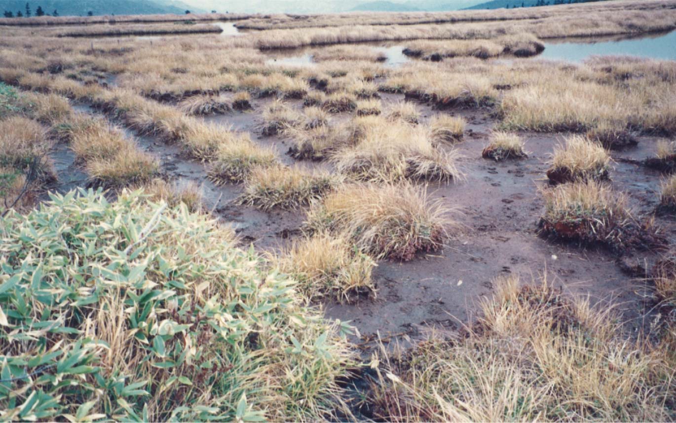湿原を構成する泥炭層は年間1mm程度しか堆積しません。自然が数千年かけてつくった湿原はほんの数年で荒廃してしまいました。
