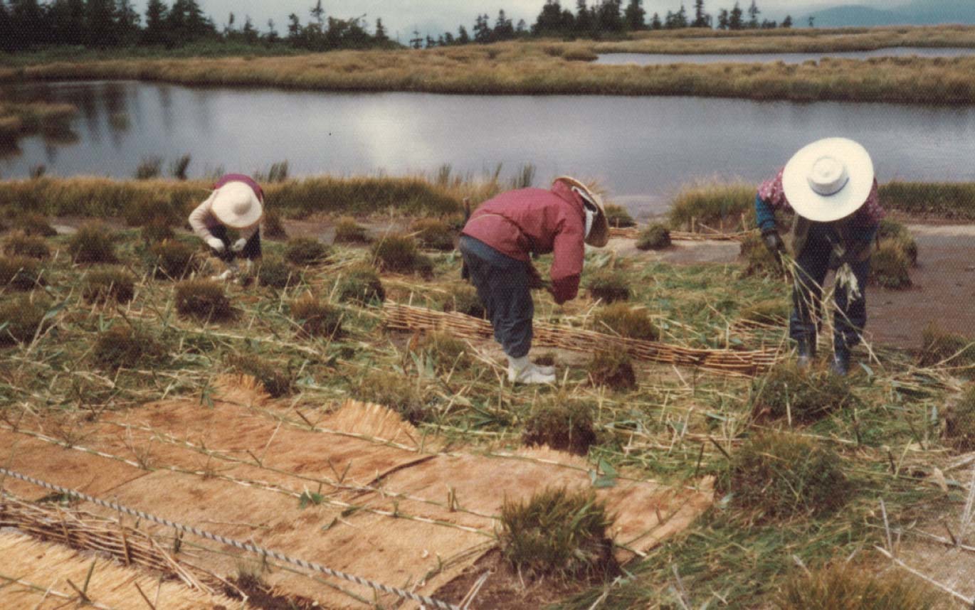 群馬県側に「アヤメ平」という場所があります。ここはかつて尾瀬のメインスポットとして多くの人々が訪れた場所でした。シートを敷いてご飯を食べたり、バドミントンをしたりと、湿原が踏み荒らされてしまい、植物は枯れ、土壌が流れて、植物が生育できない場所になってしまいました。