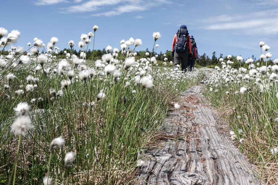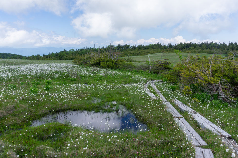 田代山は訪れる人が比較的少ないので、人がいなければ木道にこっそり寝転んでみましょう。ワタスゲに包まれる感じがたまりません。
