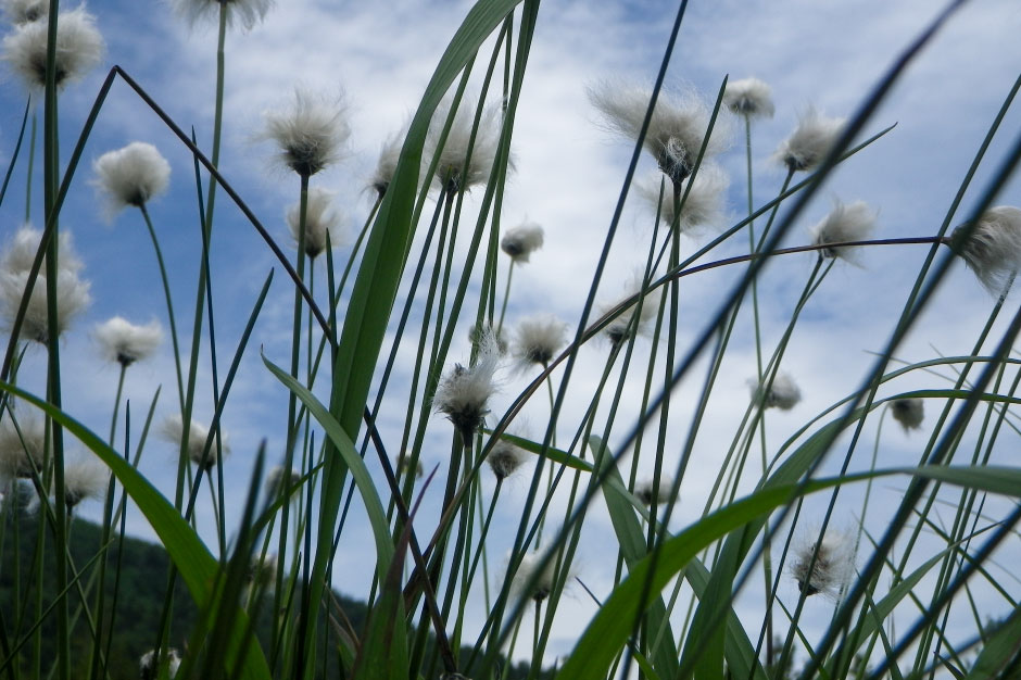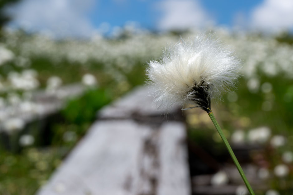 ポワポワ揺れる綿帽子。ワタスゲの果穂(綿毛)です。