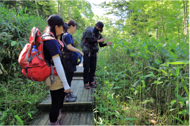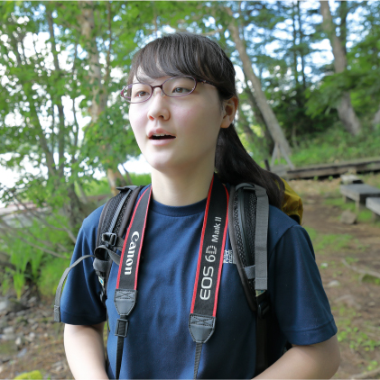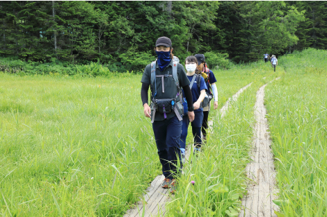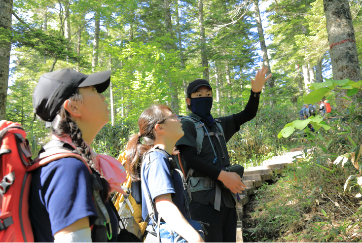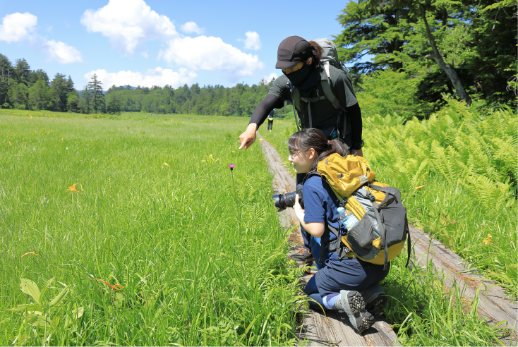 「尾瀬を初めて訪れましたが、ノアザミやニッコウキスゲなど花を教えていただきとても楽しかったです。また、教科書でしか知らなかった倒木更新を実際に目の当たりにし、それが長い年月のサイクルで営まれていることも教えてもらいました。その他にも尾瀬の自然環境の現状について知ることができたのも良かったです」