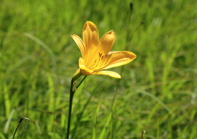 ニホンジカの侵入を防ぐためのシカ柵が大江湿原を一周グルリと囲んでいます。2014年にシカ柵が設置されてからは目に見えてニッコウキスゲの花の数が増えてきました。シカ柵に囲まれていない場所は食害が多く確認できます。