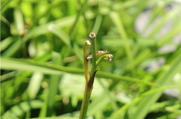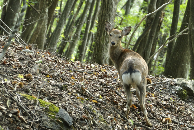 芽吹いたばかりの新芽を食べスパッと切り取ったような跡が特徴的です。ニホンジカの成獣は一日3kg 以上食べる必要があり、このまま頭数が増え続けると植物を食べ尽くしてしまいます。 食に好みがあるようで、 特定の植物を集中して食べます。