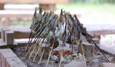 試食がはじまると男子も女子もぺろり。人生でいちばんの食べざかりですね。試食でははっとうの他に、先ほどのイワナが塩焼きになって提供されました。生徒の1人が「初めて川魚を食べましたがおいしい」と恥ずかしそうに教えてくれました。