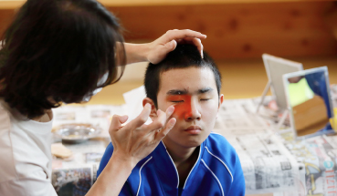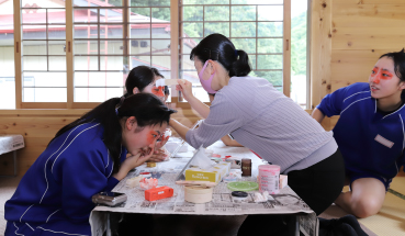 1日目、最後の体験学習は檜枝岐歌舞伎の化粧体験です。さすが女子生徒は真剣の度合いが違います。