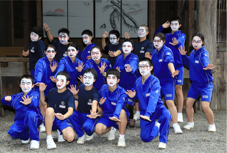 生徒それぞれの個性的な歌舞伎の隈取メイクが完成しました。