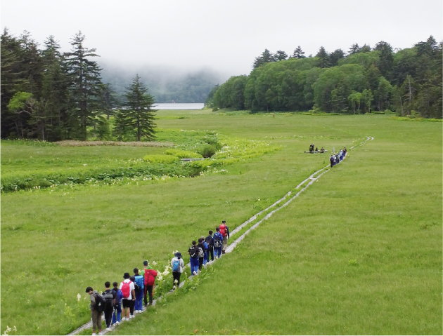 2021年7月1日。福島県浜通りの海辺の学校から中学2年生17名が尾瀬へ自然環境学習にやってきました。尾瀬の自然や麓の檜枝岐村の人々とのふれあいを通して、生徒たちが仲間と一緒に学び、体感したかけがえのない2日間をレポートします。
