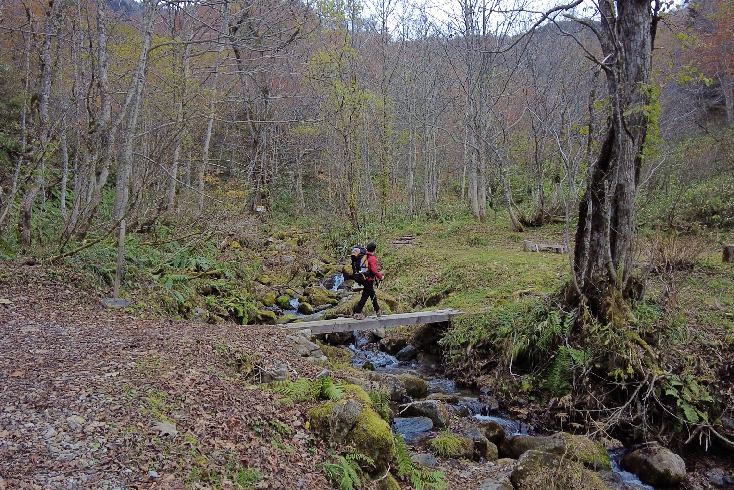 取材日はブナやダケカンバが紅葉して秋の最後を美しく彩っていました。この記事が公開される頃には冬季通行止めになっています。2021年最後の登山のタイミングでした。